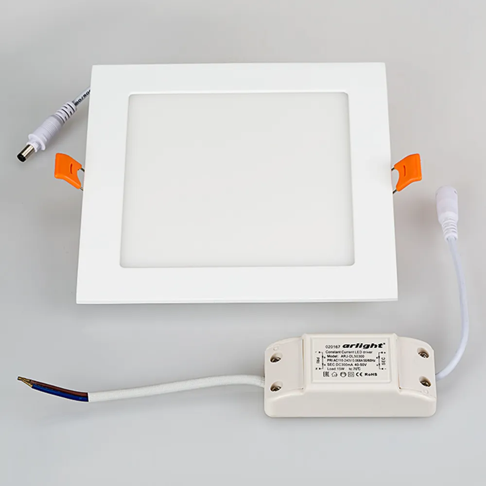 Тонкая панель 15Вт, белый квадратный корпус. Цвет ДНЕВНОЙ БЕЛЫЙ 4000K, св.поток 1125-1200лм, CRI(Ra)>80, угол 120°. Размер 172x172мм, высота корпуса 13мм, установка в отверстие 160x160мм. Питание AC 180-240V, 15Вт, драйвер в комплекте (DC300mA, 40-50V).