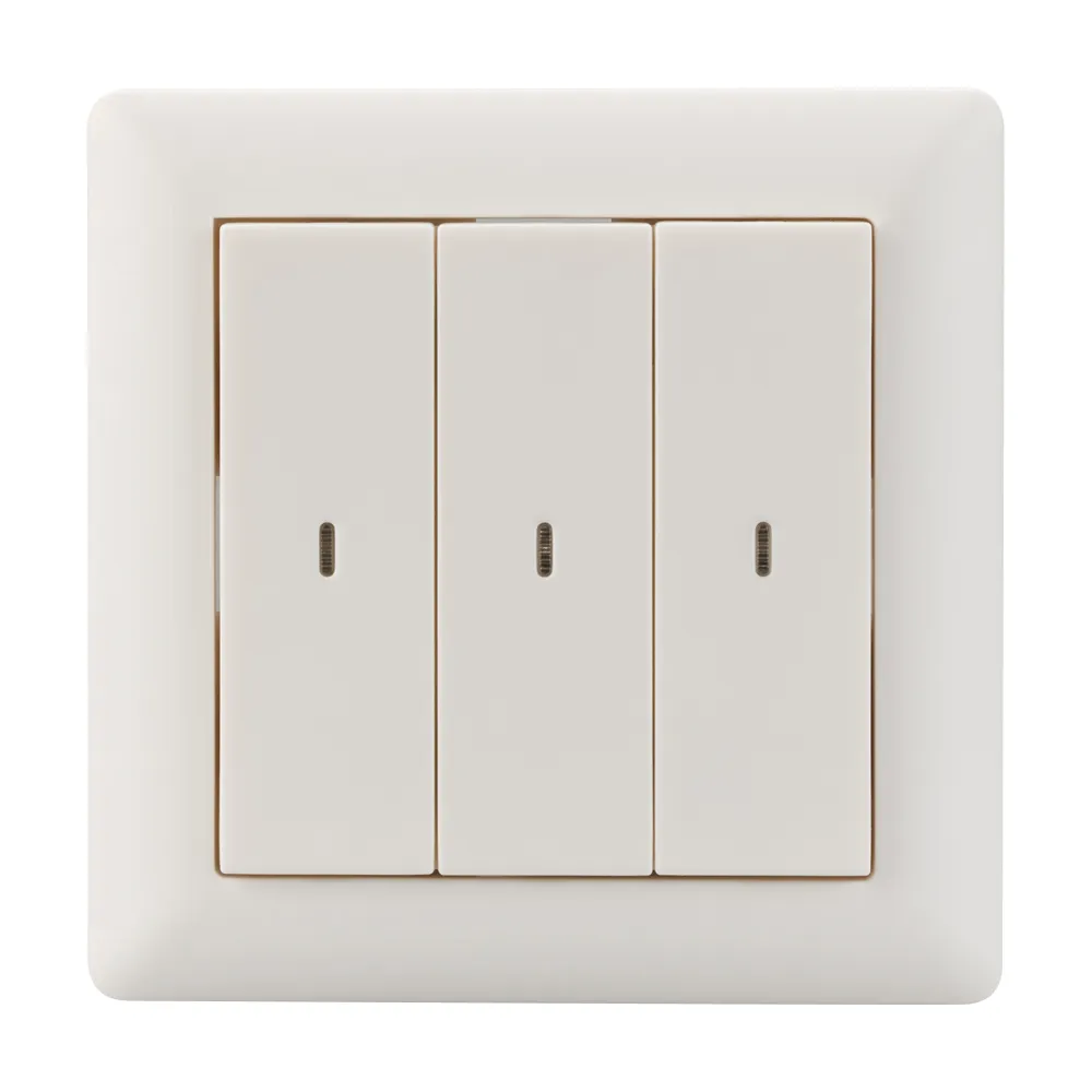 Универсальная трёхклавишная встраиваемая настенная панель стандарта KNX с шестью кнопками. Цвет корпуса белый. Питание от шины KNX DC 21-30V. Размер 86х86х45 мм.