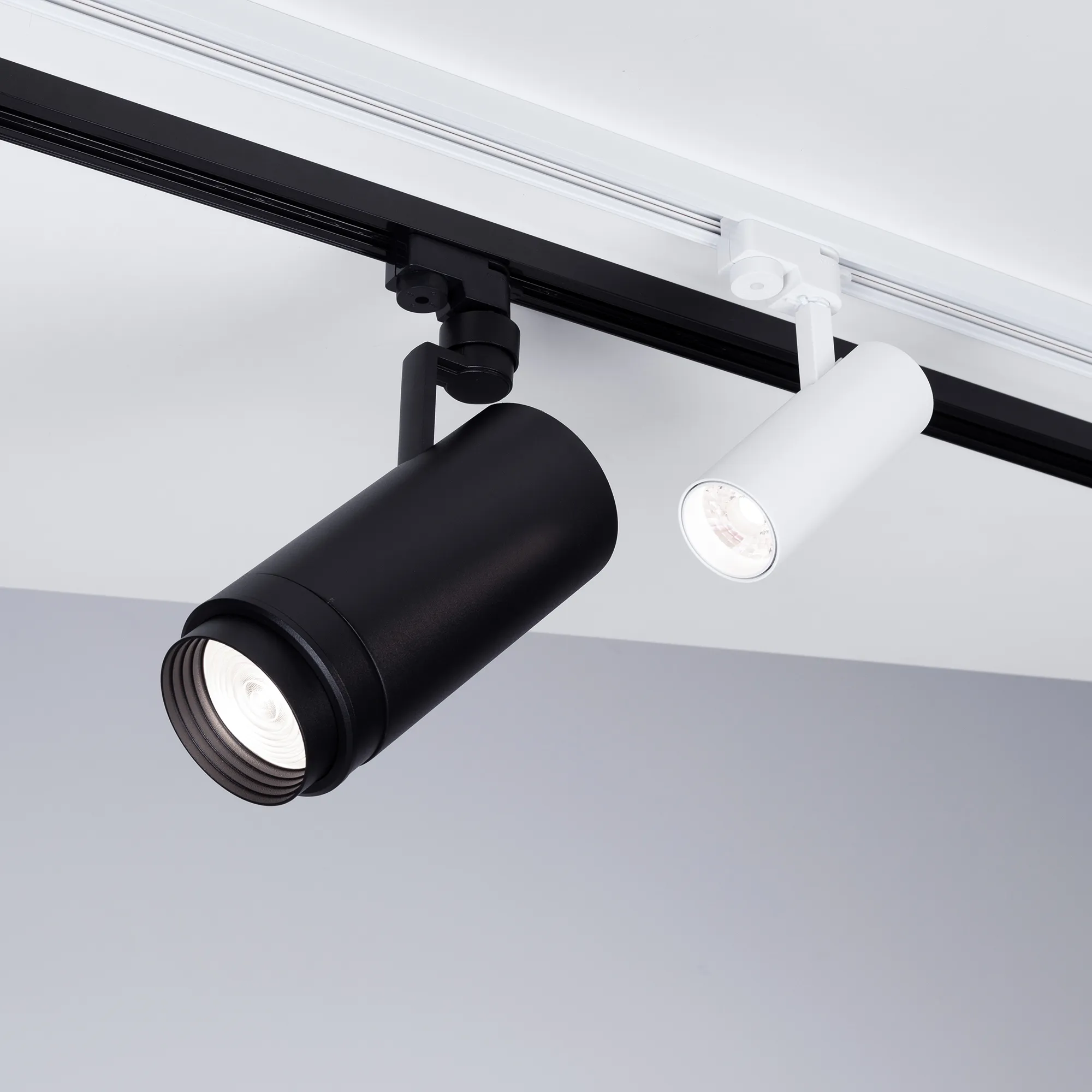 Светильник подвесной для треков/шин 2 провода, 20Вт. Цвет свечения БЕЛЫЙ 6000K, световой поток 1600-2000лм, регулируемый угол 20-60°, CRI>90. Корпус круглый, металл, цвет черный, IP20. Размеры DxHxL Ø88x200x162мм. Входное напряжение AC220-240V, мощность 20Вт. Драйвер встроенный (30-42V, 500mA).