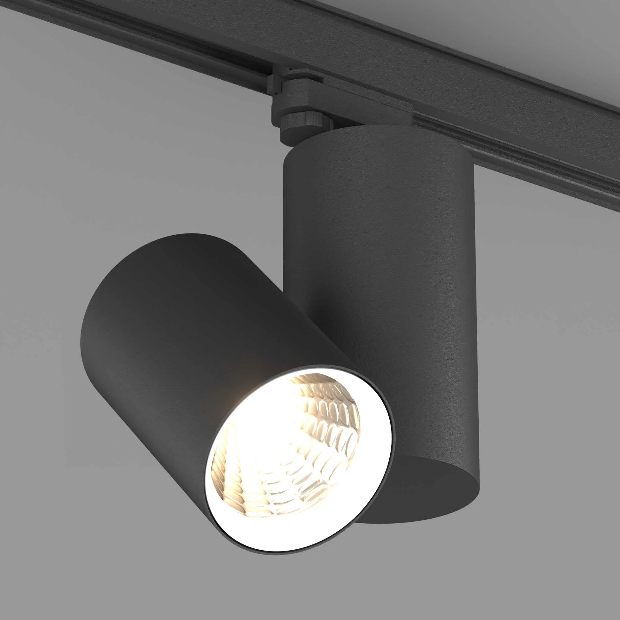 Трековый светильник 15Вт, черный круглый корпус, белая вставка, металл.