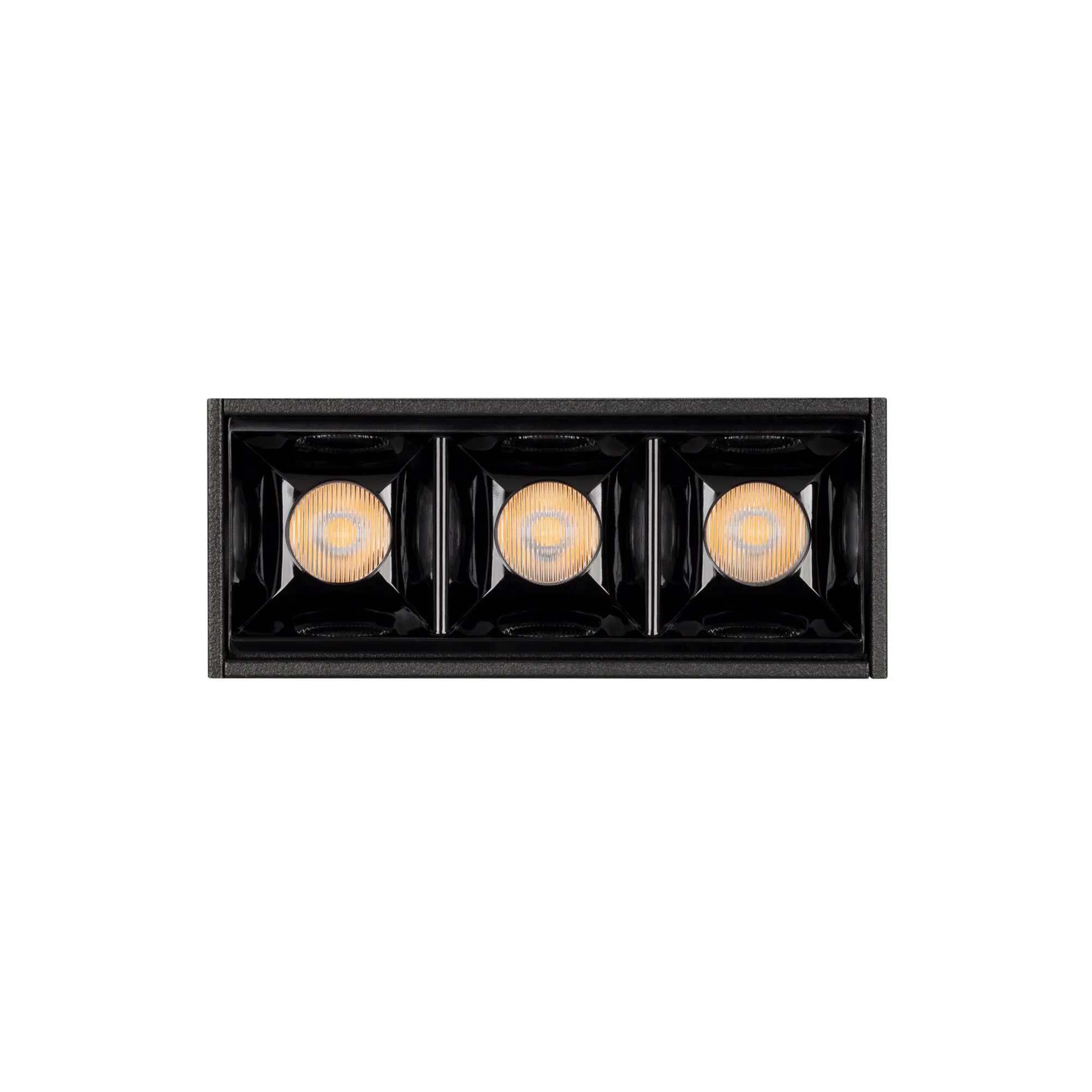 Светильник для магнитных треков шириной 45мм, 3Вт. Цвет свечения БЕЛЫЙ ТЕПЛЫЙ 3000K, световой поток 222лм, угол 15°, CRI>90. Корпус прямоугольный, металл, цвет черный, IP20. Размеры LxWxH 84x35x43мм. Входное напряжение DC24V, мощность 3Вт. Драйвер DС24V/AC230V поставляется отдельно. Диммируется только с 026407(1), 027633.