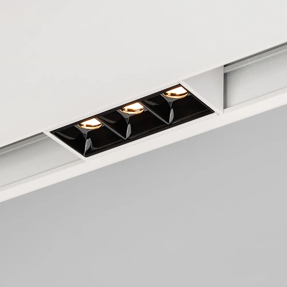 Светильник для магнитных треков шириной 45мм, 3Вт. Цвет свечения БЕЛЫЙ ТЕПЛЫЙ 3000K, световой поток 222лм, угол 15°, CRI>90. Корпус прямоугольный, металл, цвет белый, IP20. Размеры LxWxH 84x35x43мм. Входное напряжение DC24V, мощность 3Вт. Драйвер DС24V/AC230V поставляется отдельно. Не диммируется.