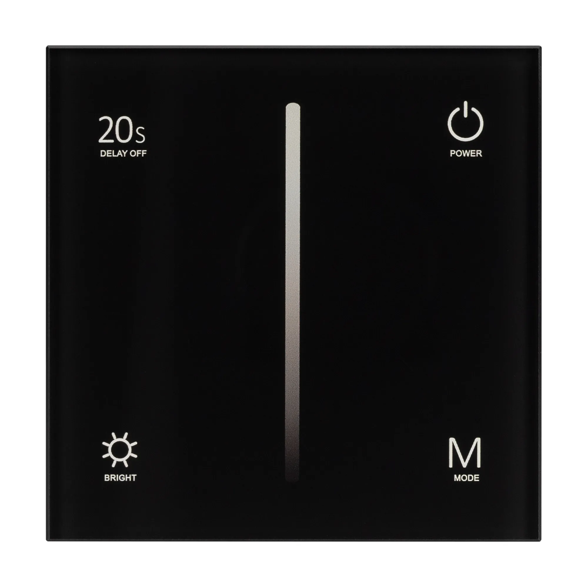 Встраиваемая сенсорная стеклянная панель 2.4 ГГц, цвет чёрный. Для управления одноцветными источниками света (TRIAC). Управление яркостью с помощью сенсорной полосы. Питание/рабочее напряжение 100-240VAC, 1 зона управления. Габариты 86х86х35 мм.