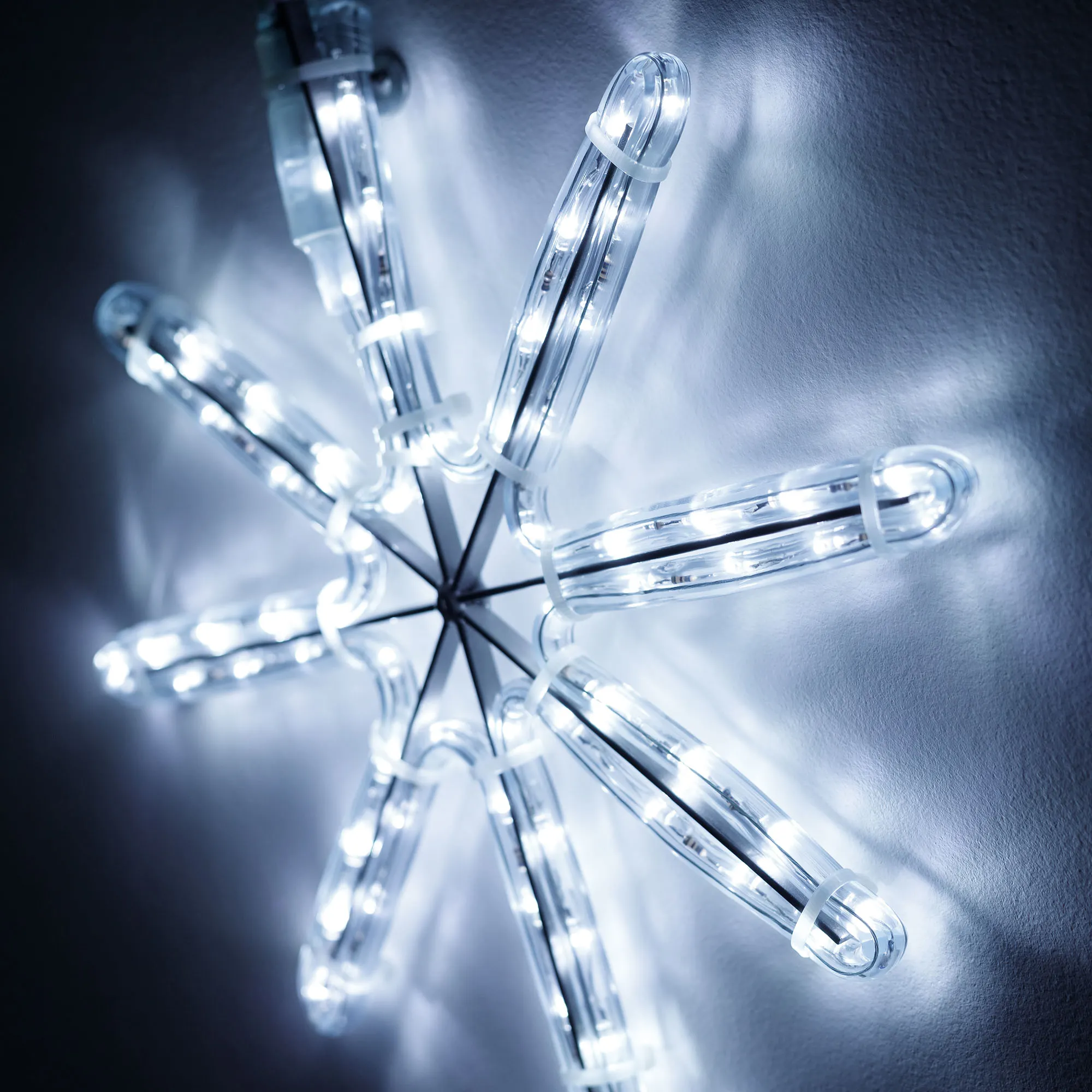 Светодиодная фигура ЗВЕЗДОЧКА. Размер 380x250 мм. Цвет светодиодов БЕЛЫЙ (6000 К), постоянное свечение. 36 светодиодов. Напряжение питания 230 В, потребляемая мощность 2.5 Вт, степень пылевлагозащиты IP65. Фигура укомплектована проводом питания для подключения к сети 230 В (без вилки питания).