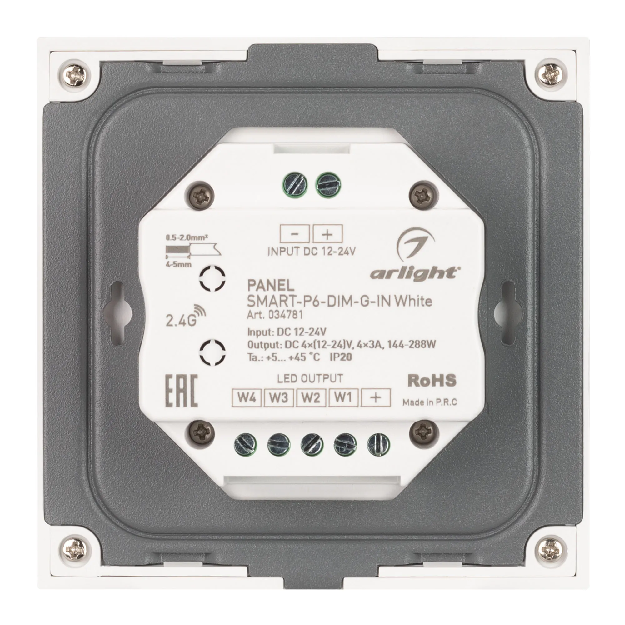 В магазине Мельковский Свет Вы можете купить "Панель SMART-P6-DIM-G-IN White (12-24V, 4x3A, Sens, 2.4G) (Arlight, IP20 Пластик, 5 лет)"