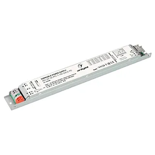 Диммируемый источник тока по протоколу DALI 2.0 (диапазон 0-100%) и 1-10V (диапазон 2%-100%) с гальванической развязкой для светильников и мощных светодиодов. Входное напряжение 220-240 VAC. Выходные параметры: 18-90В (200мA), 18-90В (250мА), 18-90В (300мА), 18-85В (350мА), 18-75В (400мА), 18-67В (450мА), 18-60В (500мА), 18-55В (550мА), максимальная мощность 30 Вт. Встроенный PFC >0.95. Негерметичный металлический корпус IP 20. Габаритные размеры длина 284 мм, ширина 30 мм, высота 21 мм. Гарантийный срок 5 лет.