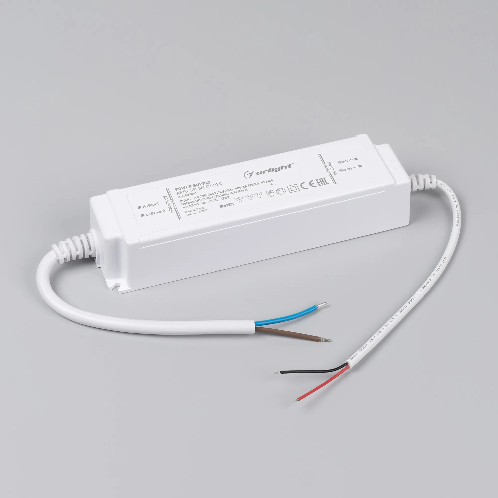 Блок питания ARPJ-SP-86700-PFC (60W, 43-86V, 0.7A) (Arlight, IP67 Пластик, 5 лет)