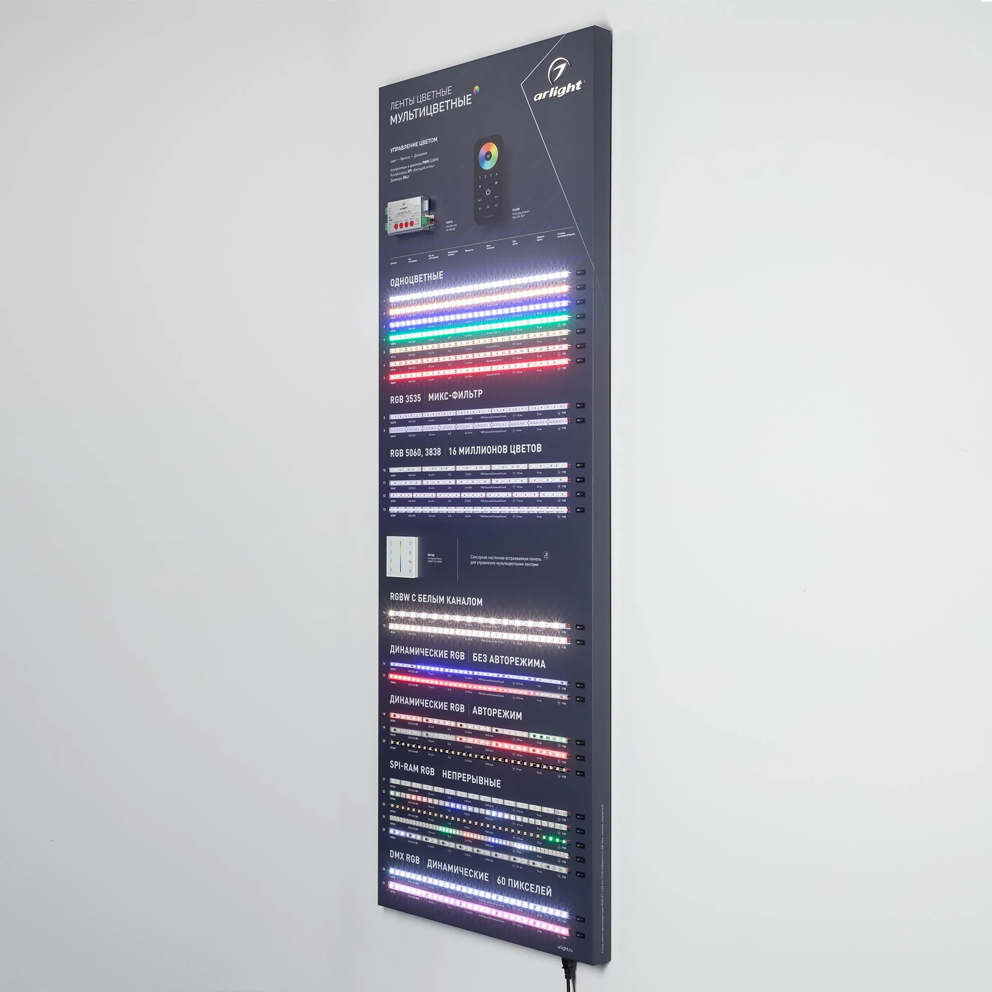 Стенд Ленты Мультицветные RGB RT-LUX-E4-1760x600mm (v.2, DB 3мм, пленка, подсветка) (Arlight, -)