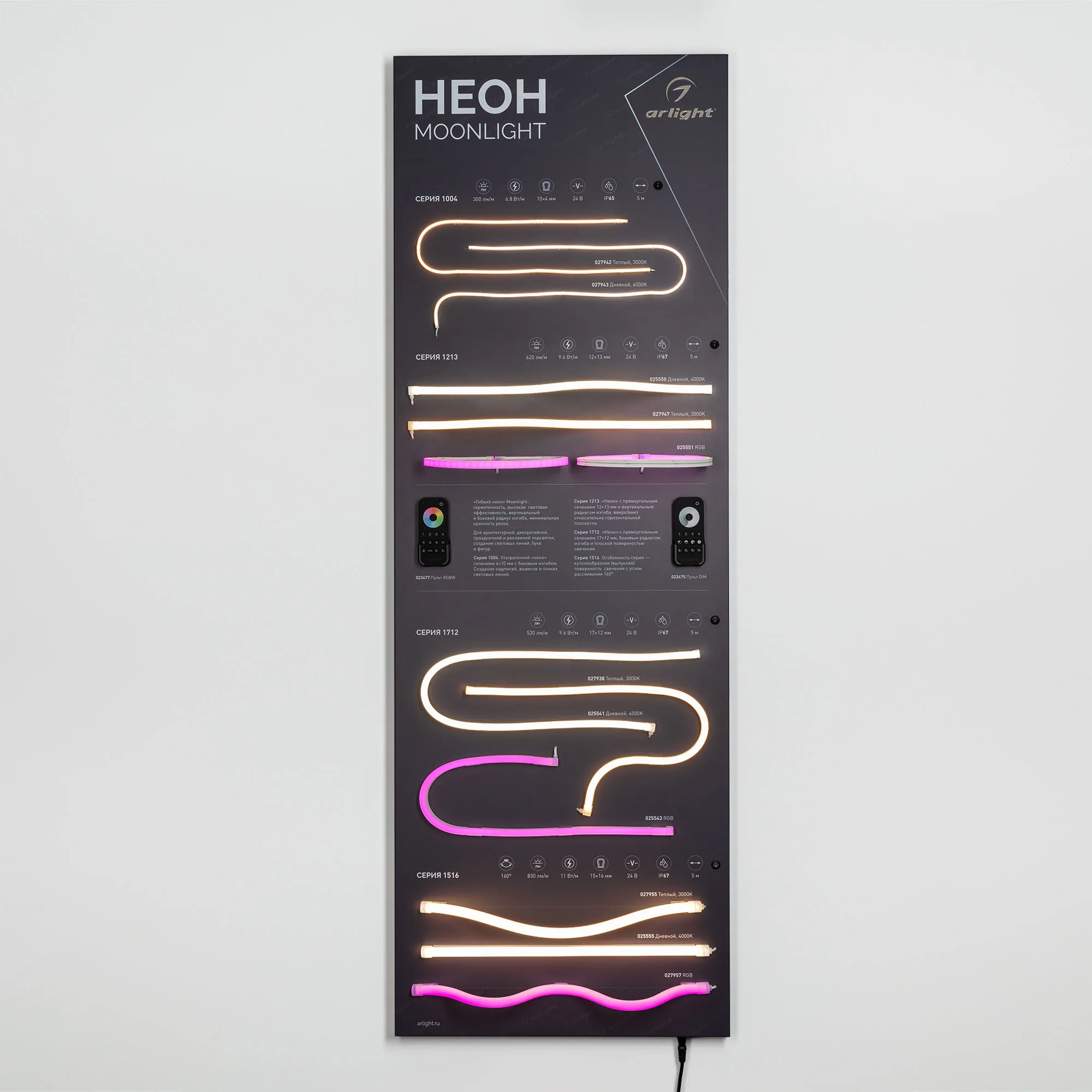 Наши специалисты знают все о продукции Arlight и с радостью помогут Вам выбрать комплектующие к товару "Стенд Гибкий Неон MOONLIGHT-1760x600mm (Arlight, -)", или другие товары из раздела "Светодиодный декор".