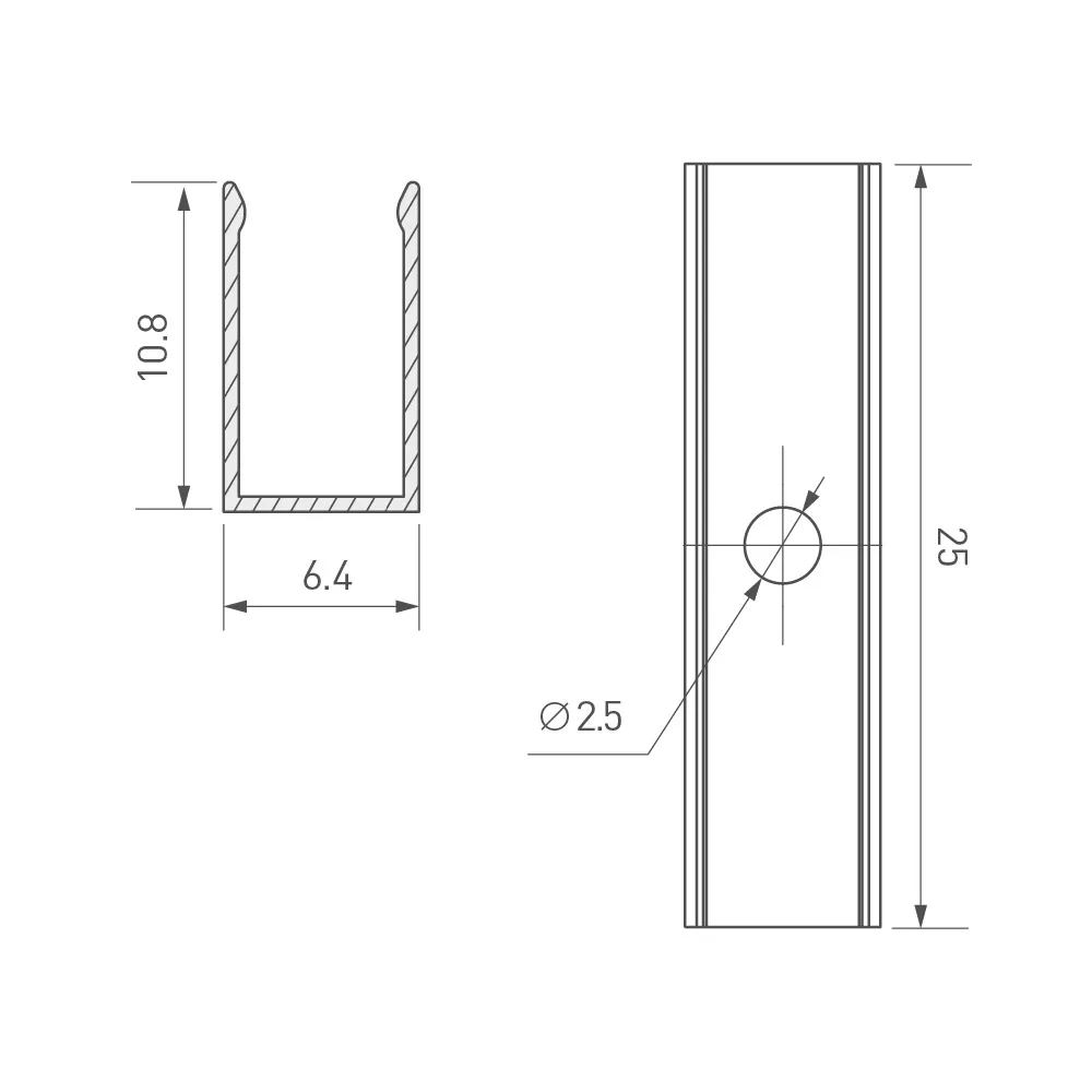 Клипса из анодированного алюминия для гибкого неона AURORA сечения 12х6мм. Длина 25 мм, ширина 6.4 мм.