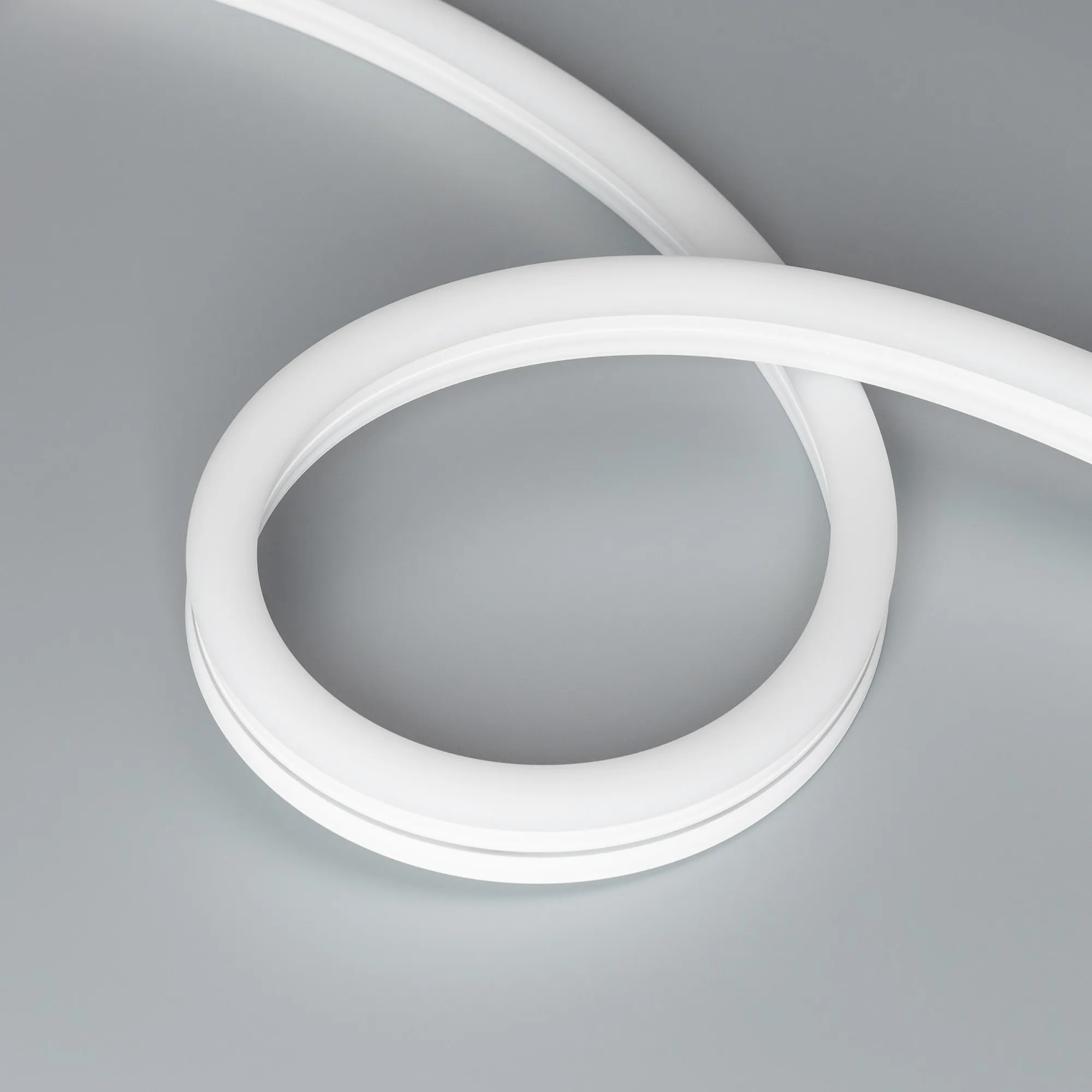 Гибкая герметичная лента (неон серии MOONLIGHT), сечение 12×24 мм. Светодиоды SMD 2835 140 шт/м. Цвет свечения ТЕПЛЫЙ БЕЛЫЙ (2700 К), индекс цветопередачи CRI>80, световой поток 420 лм/м, угол излучения 178°. Мощность 9.6 Вт/м, питание 24 В. Класс пылевлагозащиты IP68. Размеры 5000×12×24 мм. Мин. отрезок 50 мм. Горизонтальный изгиб SIDE, минимальный радиус изгиба 60 мм. Вывод кабеля с двух сторон. Катушка 5 м. Цена за 1 м. Гарантия 3 года.