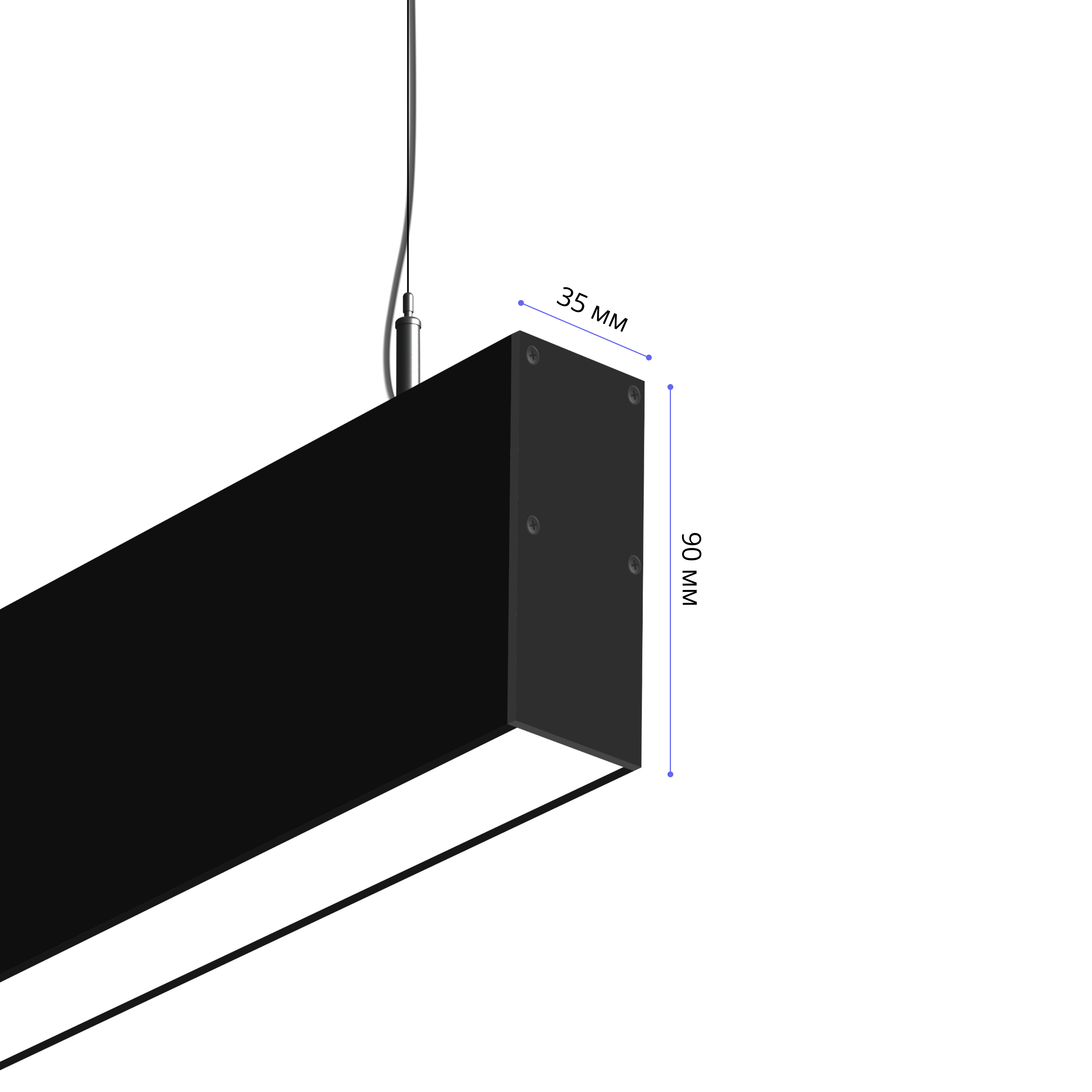 Подвесной светильник MS-LINEAR Линейный размер профиля 90х35мм длиной 1250мм мощностью 40W. Светильник собирается в алюминиевом корпусе с матовым рассеивателем, который дает равномерную засветку по всей площади.