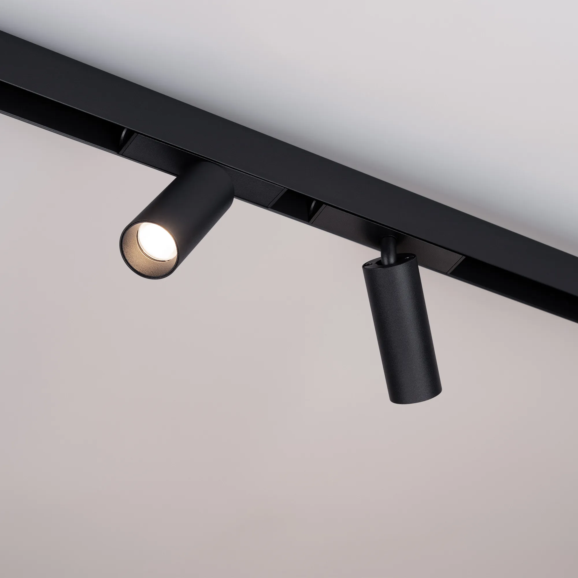Светильник поворотный для магнитных треков шириной 25 мм с управлением DALI, мощность 9 Вт. Цвет свечения ТЕПЛЫЙ 3000K, световой поток 630 лм, угол 30°, CRI>90. Корпус прямоугольный, металл, цвет черный, IP20. Размеры LxWxH 100x35x90 мм. Входное напряжение DC24V, мощность 9 Вт. Драйвер AС230V/DC24V поставляется отдельно. Диаметр светоизлучающего модуля 35 мм.