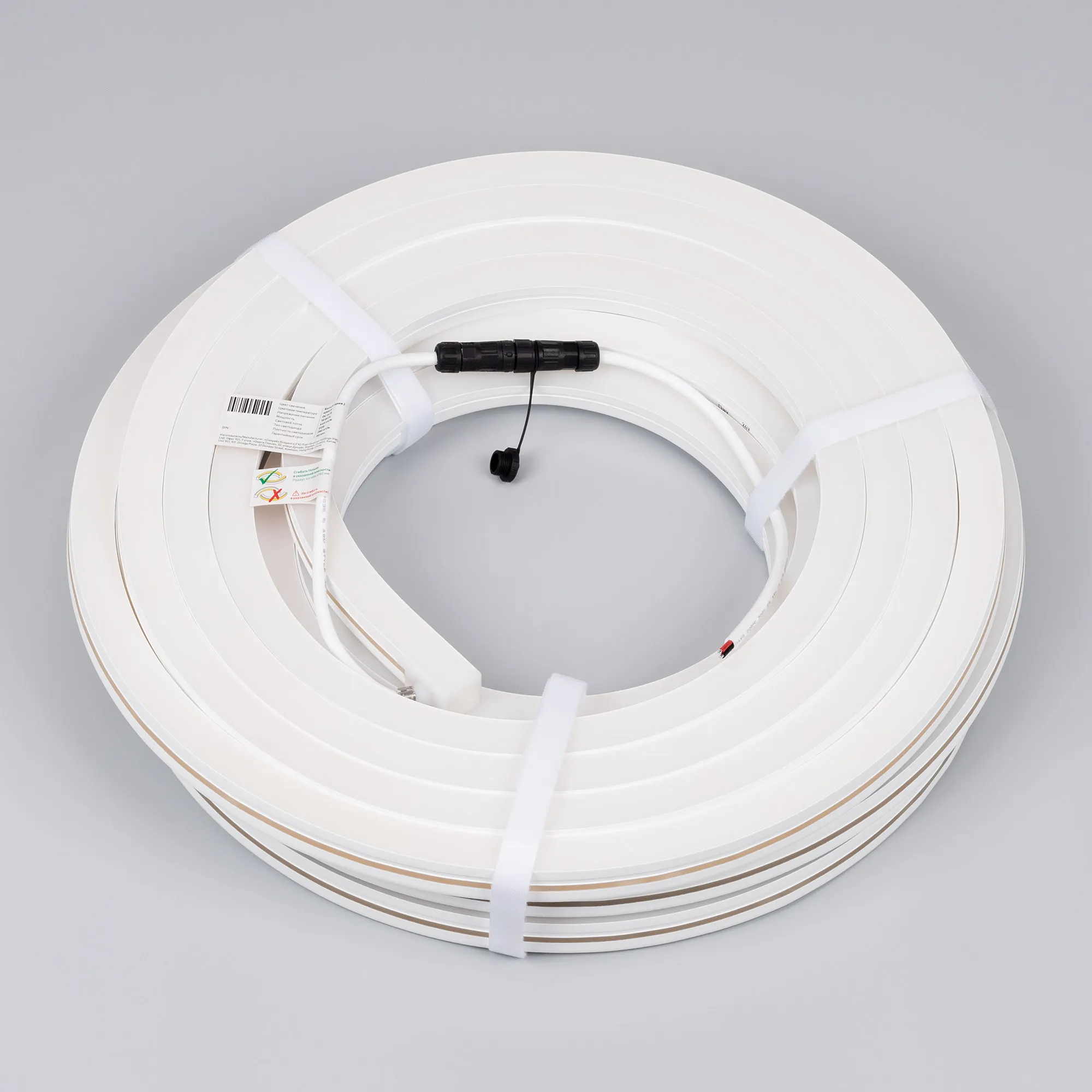 Гибкая герметичная лента (неон серии MOONLIGHT), сечение 20×20 мм. Светодиоды CSP 280 шт/м. Цвет свечения ДНЕВНОЙ (4000К), индекс цветопередачи CRI>90, световой поток 440 лм/м, угол излучения 114°. Мощность 10 Вт/м, питание 24 В. Класс пылевлагозащиты IP67. Размеры 15000×20×20 мм. Мин. отрезок 50 мм. Горизонтальный изгиб SIDE, минимальный радиус изгиба 180 мм. Катушка 15 м. Цена за 1 м. Гарантия 5 лет.