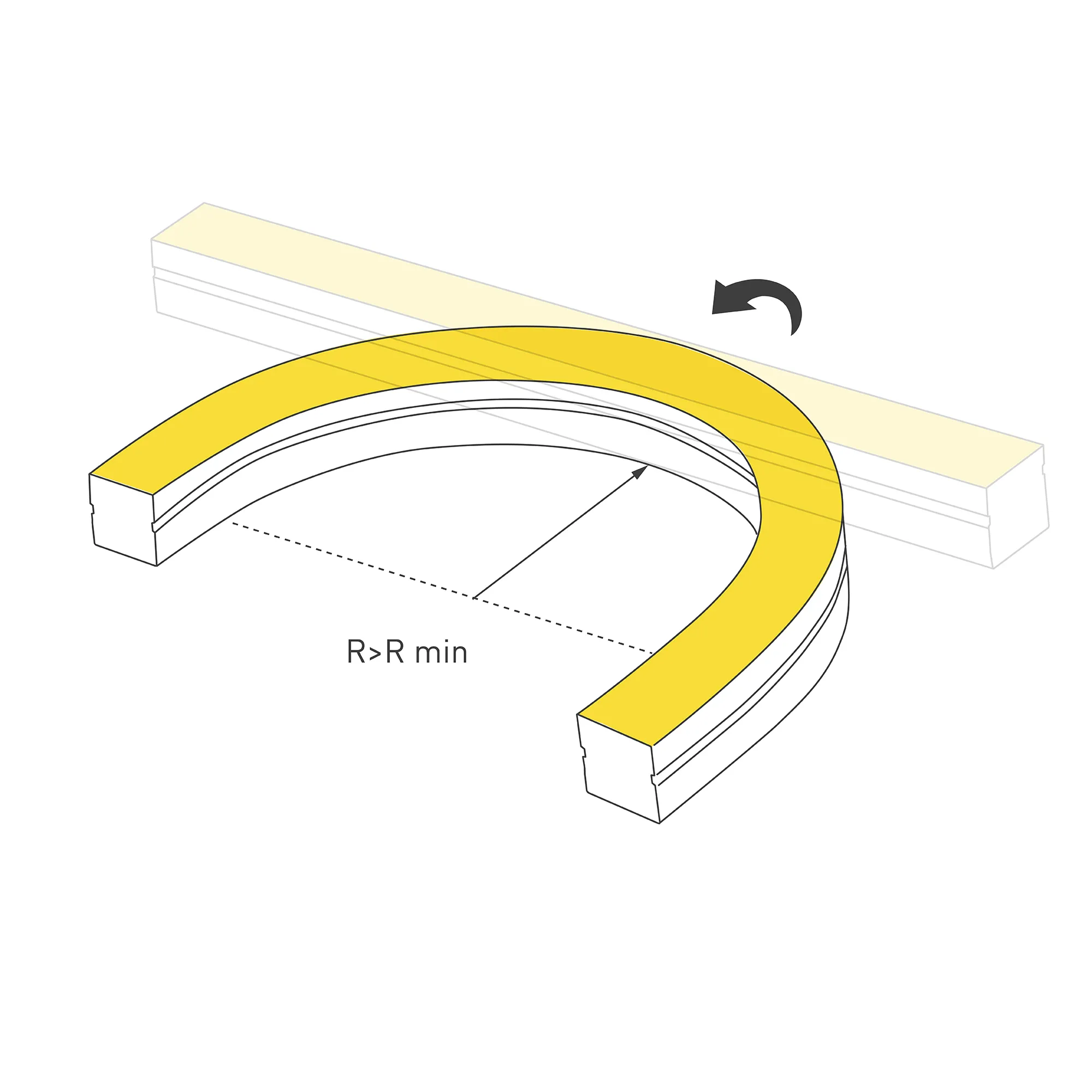 Гибкая герметичная лента (неон серии MOONLIGHT), сечение 16×16 мм. Светодиоды CSP 280 шт/м. Цвет свечения ТЕПЛЫЙ (2700К), индекс цветопередачи CRI>90, световой поток 420 лм/м, угол излучения 114°. Мощность 10 Вт/м, питание 24 В. Класс пылевлагозащиты IP67. Размеры 15000×16×16 мм. Мин. отрезок 50 мм. Горизонтальный изгиб SIDE, минимальный радиус изгиба 120 мм. Катушка 15 м. Цена за 1 м. Гарантия 5 лет.