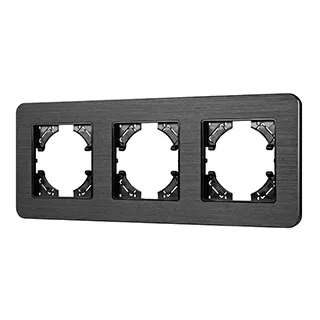 Рамка алюминиевая на 3 поста, под встраиваемый механизм. Цвет - черный. Среднего уровня герметичности IP20. Ориентация монтажа - горизонтальная (основным ориентиром служат посадочные выступы для накладки механизма).