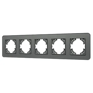 Рамка стеклянная на 5 постов, под встраиваемый механизм. Цвет - серый. Среднего уровня герметичности IP20. Ориентация монтажа - горизонтальная (основным ориентиром служат посадочные выступы для накладки механизма).