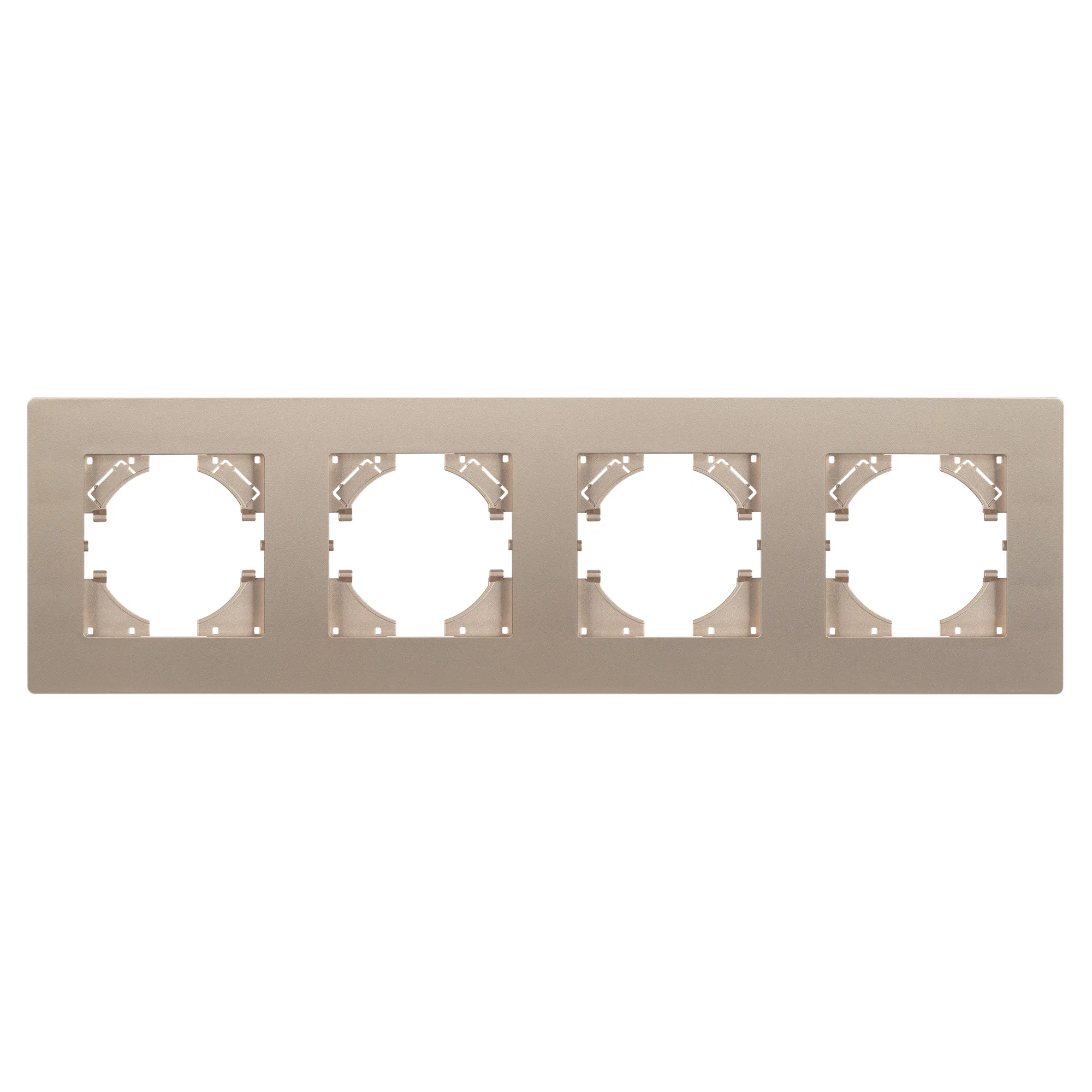 Рамка пластиковая на 4 поста, под встраиваемый механизм. Цвет - золотой. Среднего уровня герметичности IP20. Ориентация монтажа - горизонтальная (основным ориентиром служат посадочные выступы для накладки механизма).