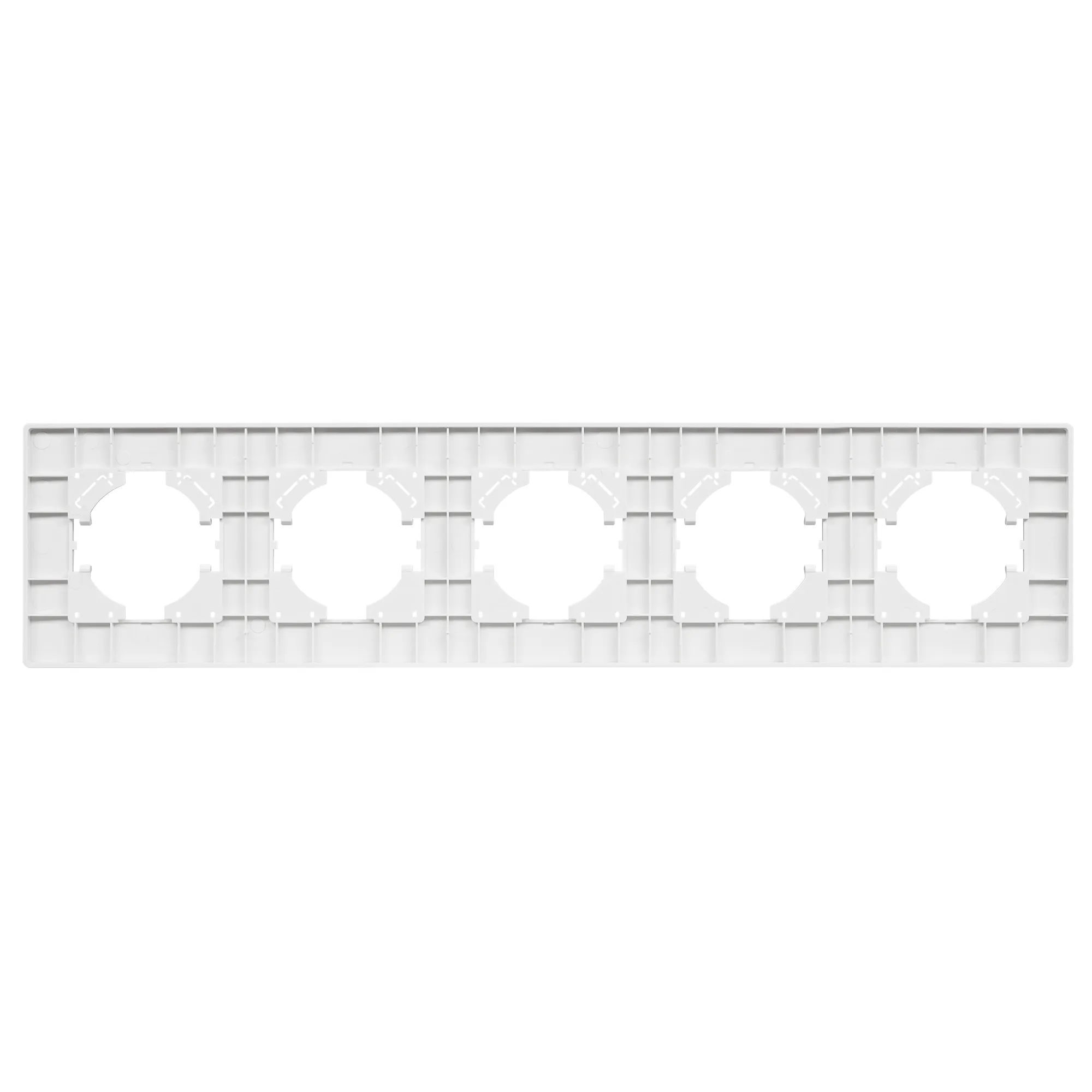 Рамка пластиковая на 5 постов, под встраиваемый механизм. Цвет - черный. Среднего уровня герметичности IP20. Ориентация монтажа - горизонтальная (основным ориентиром служат посадочные выступы для накладки механизма).