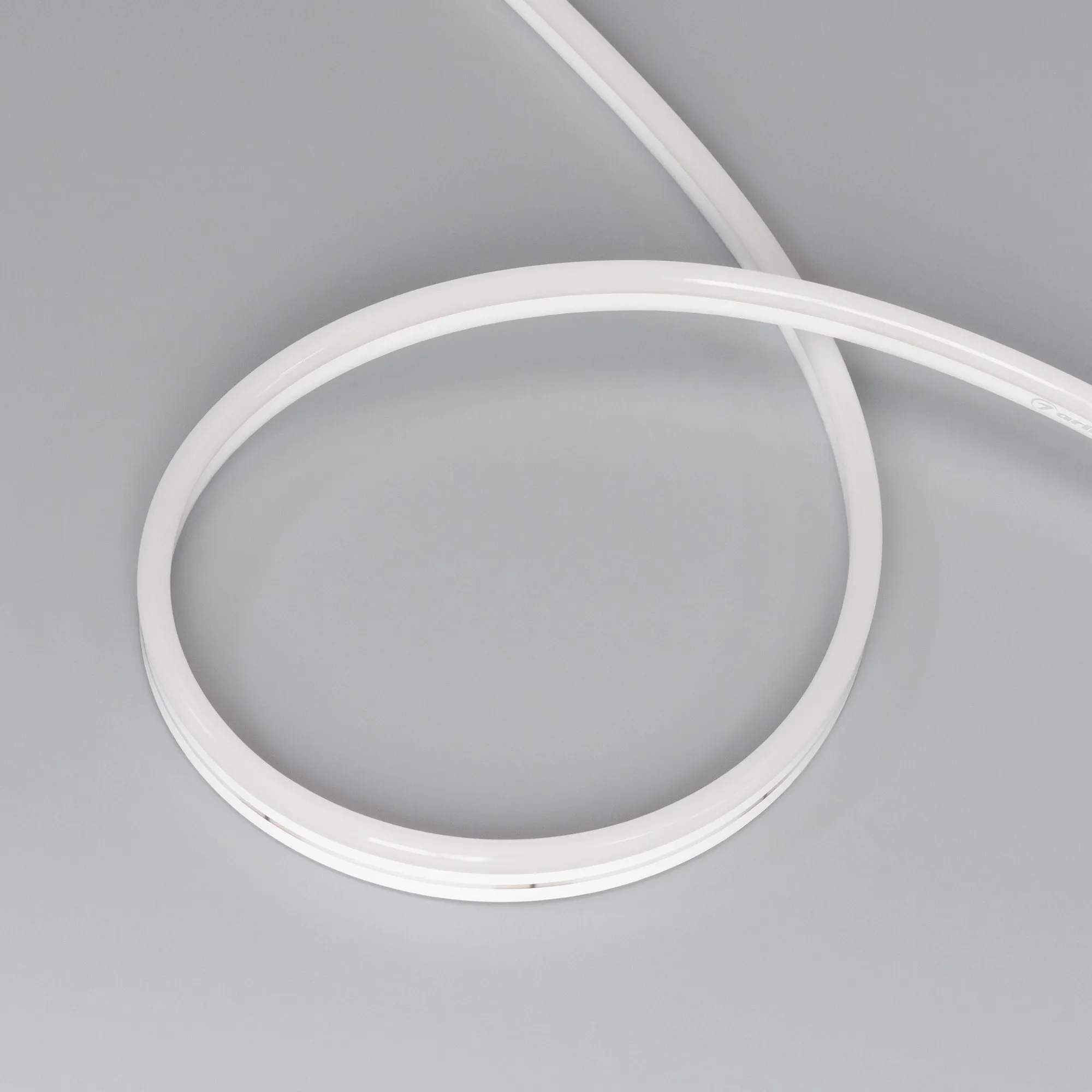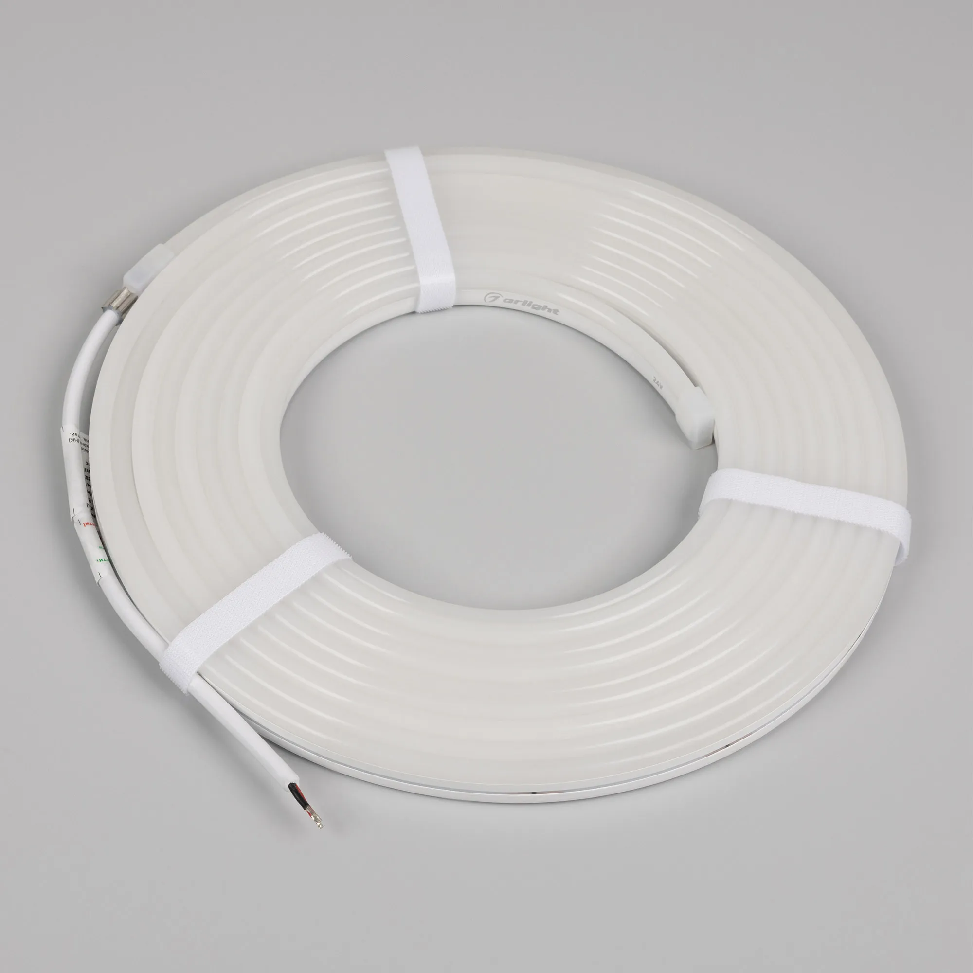 Гибкая герметичная лента (неон серии HALO), сечение 6×13 мм. Светодиоды SMD 2835 160 шт/м. Цвет свечения ТЁПЛЫЙ БЕЛЫЙ (3000 К), индекс цветопередачи CRI>80, световой поток 600 лм/м, угол излучения 186°. Мощность 10 Вт/м, питание 24 В. Класс пылевлагозащиты IP67. Размеры 5000×6×13 мм. Мин. отрезок 50 мм. Горизонтальный изгиб SIDE, минимальный радиус изгиба 25 мм. Вывод кабеля с одной стороны. Катушка 5 м. Цена за 1 м. Гарантия 3 года.