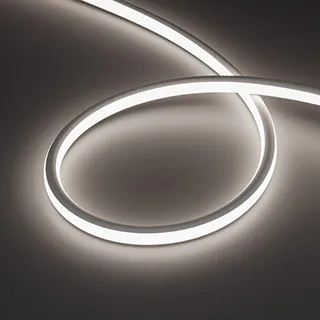 Гибкая герметичная лента (неон серии WAVE), сечение 18×15 мм с тросом-натяжителем. Светодиоды SMD2835 560 шт/м. Цвет свечения ДНЕВНОЙ (5200 К), индекс цветопередачи CRI>90, световой поток 495 лм/м, угол излучения 360°. Мощность 10 Вт/м, питание 24 В. Класс пылевлагозащиты IP54. Размеры 5000×18×15 мм. Мин. отрезок 25 мм. Изгиб согласно метки на корпусе, минимальный радиус изгиба 150 мм. Кабель питания длиной 500 мм, вывод с одной стороны вдоль линии сечения неона. Катушка 5 м. Цена за 1 м. Гарантия 3 года.