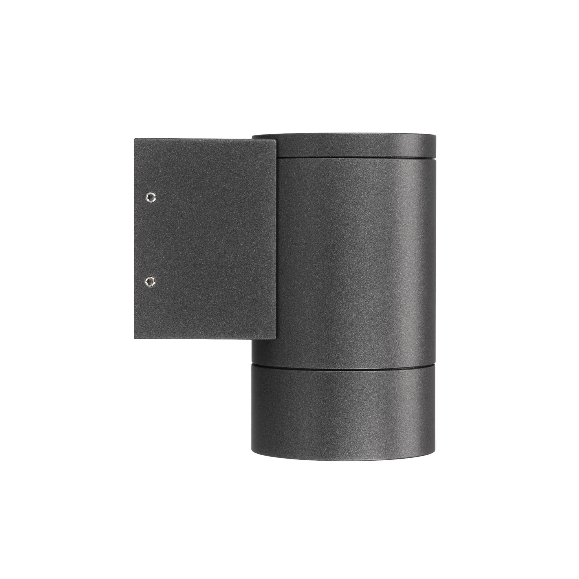 Накладной настенный светильник. Мощность 12 Вт, св. поток 370 лм, 31 лм/Вт, теплый 3000 K, CRI>80, угол 6°, напряжение питания 230 В. Темно-серый фигурный корпус из алюминия, экран стекло, степень защиты IP65. Размер: длина 98 мм, ширина 65 мм, высота 110 мм. Монтаж накладной. Драйвер встроенный, пульсация <2%.