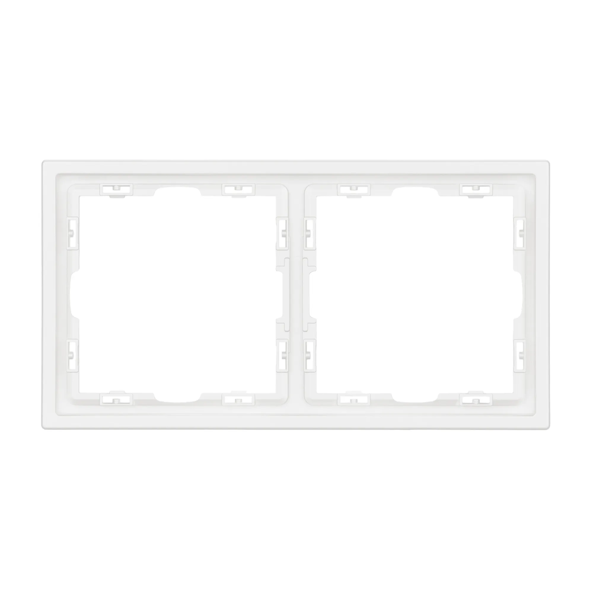 Рамка пластиковая на 2 поста, под встраиваемый механизм. Цвет - белый, с Soft-Touch покрытием. Среднего уровня герметичности IP20. Ориентация монтажа горизонтальная.
