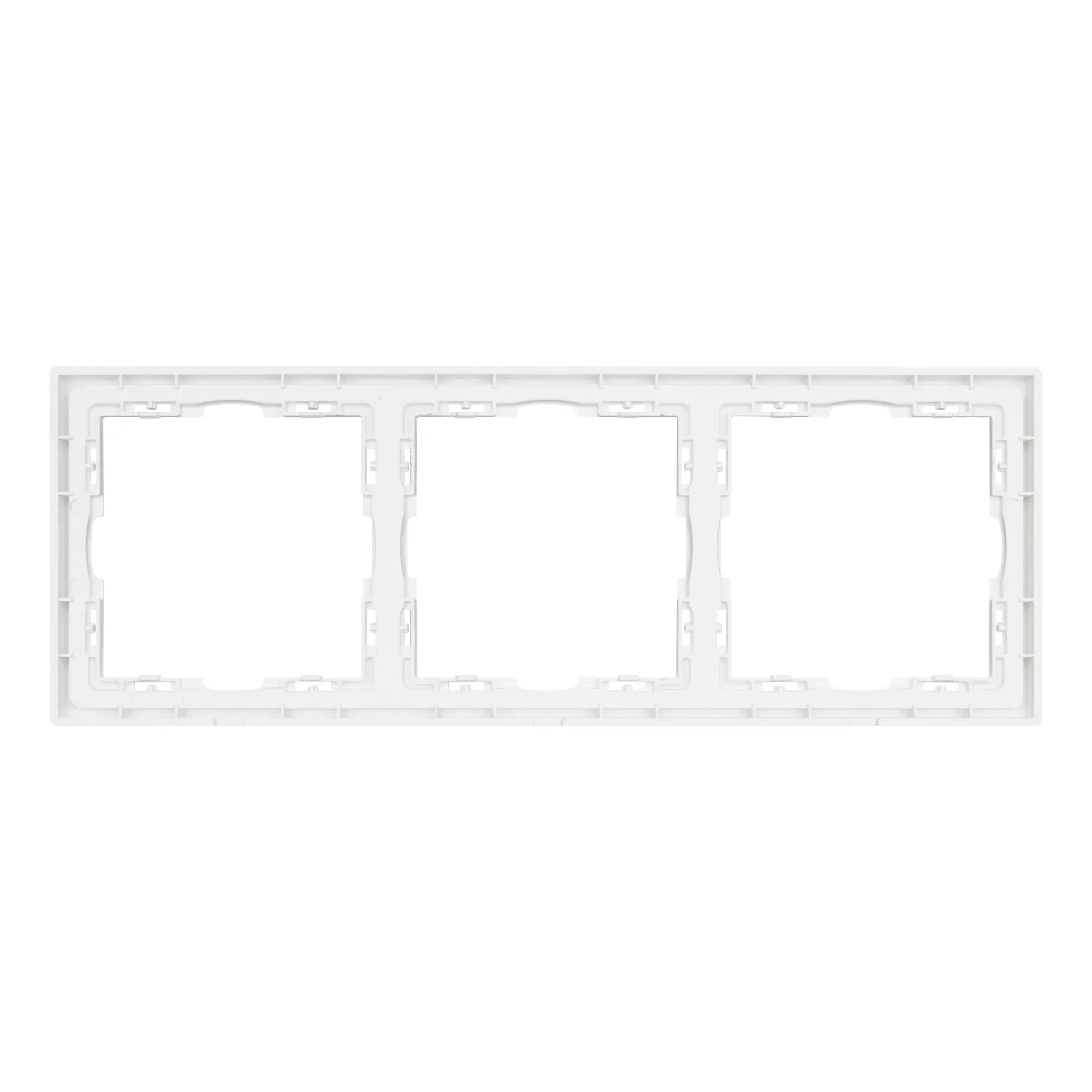 Рамка пластиковая на 3 поста, под встраиваемый механизм. Цвет - белый, с Soft-Touch покрытием. Среднего уровня герметичности IP20. Ориентация монтажа горизонтальная.