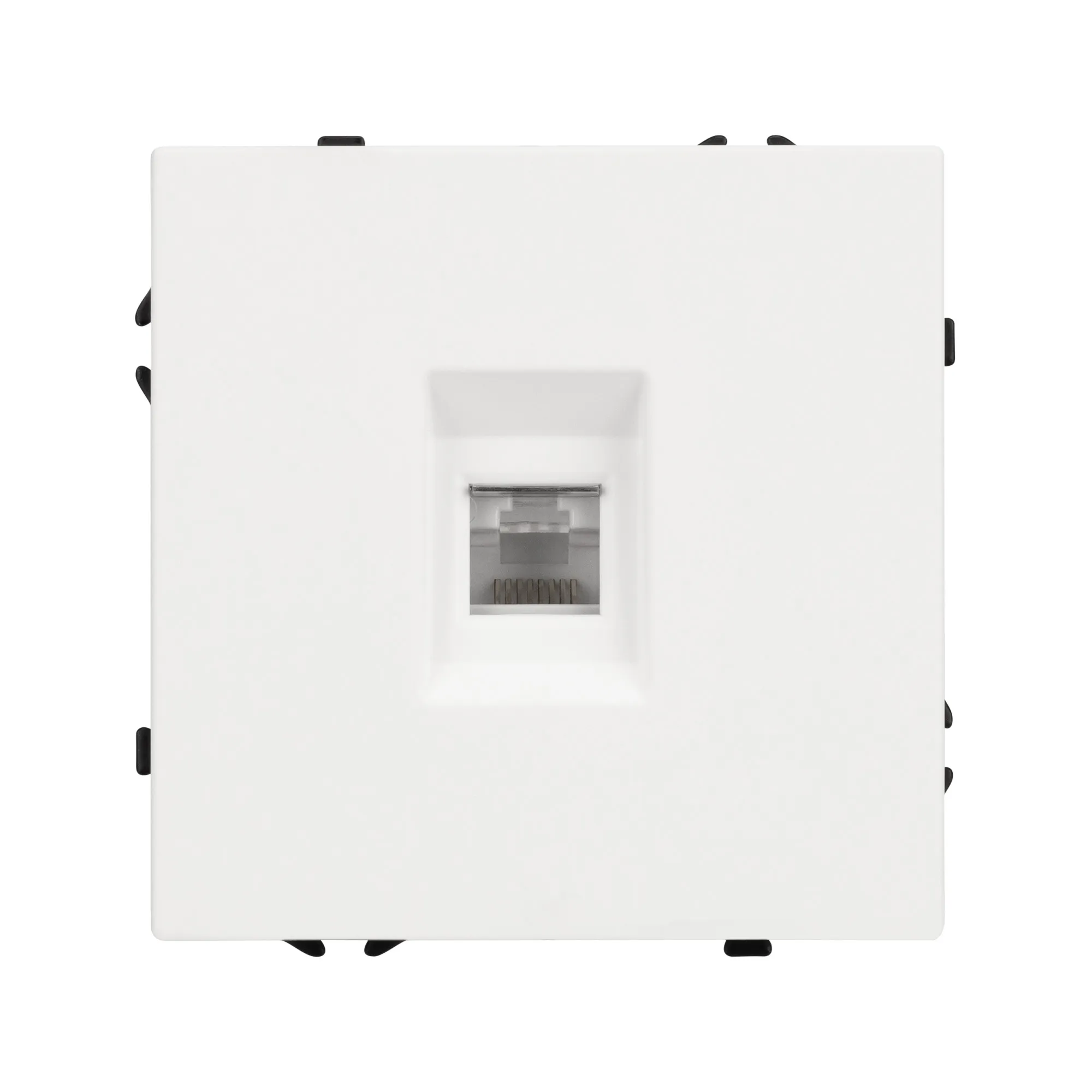 Механизм компьютерной розетки на 1 пост 6-й категории. Цвет - Белый, с Soft-Touch покрытием. Без фронтальной рамки. Уровень пылевлагозащиты IP20. Тип подключаемого разъема - RJ45. Розетка устанавливается в стандартный подрозетник круглого сечения диаметром 60мм.
