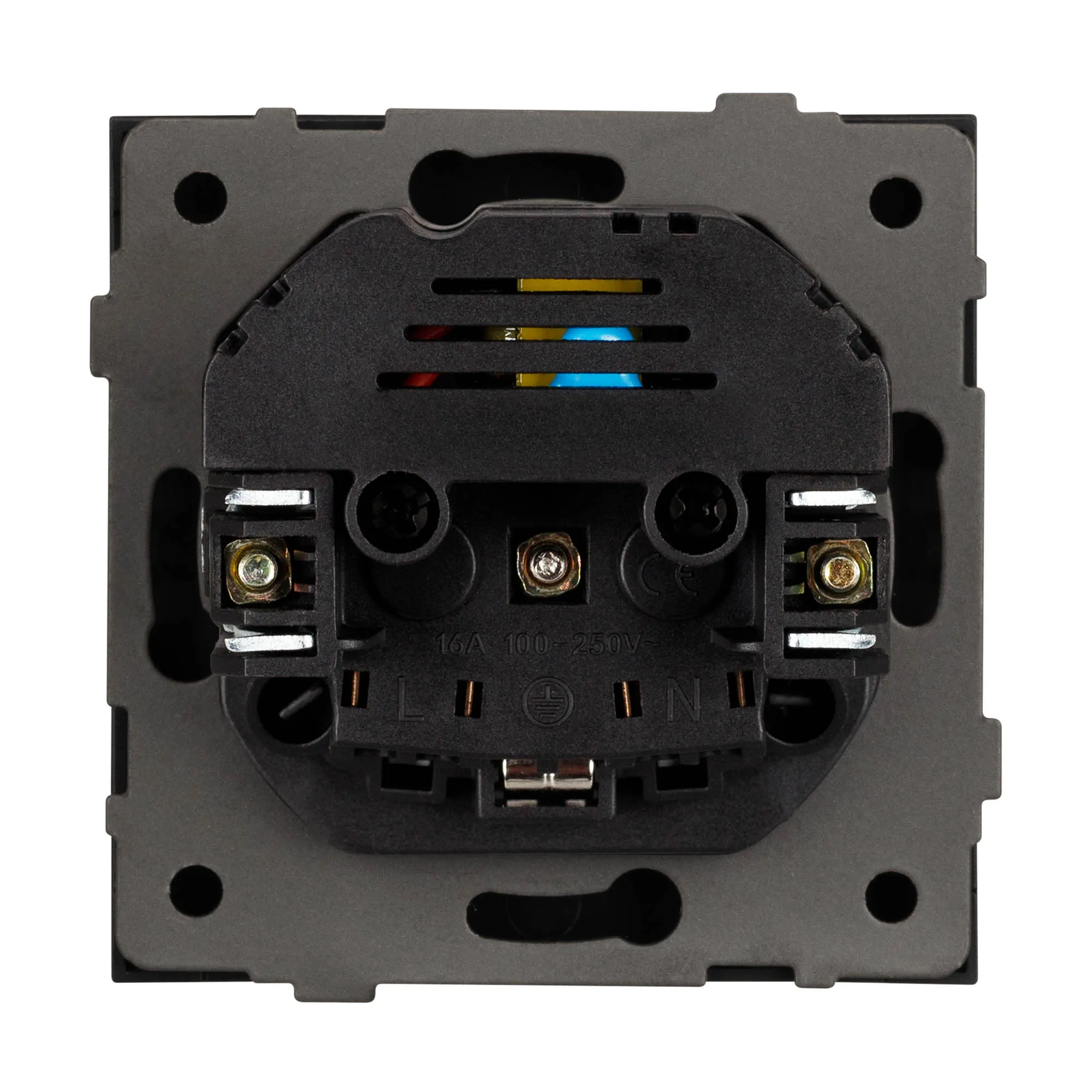 Механизм розетки с заземлением на 1 пост и 2USB Type A порта. Цвет - черный, с Soft-Touch покрытием. Без фронтальной рамки. Уровень пылевлагозащиты IP20. Розетка устанавливается в стандартный подрозетник круглого сечения диаметром 60мм.