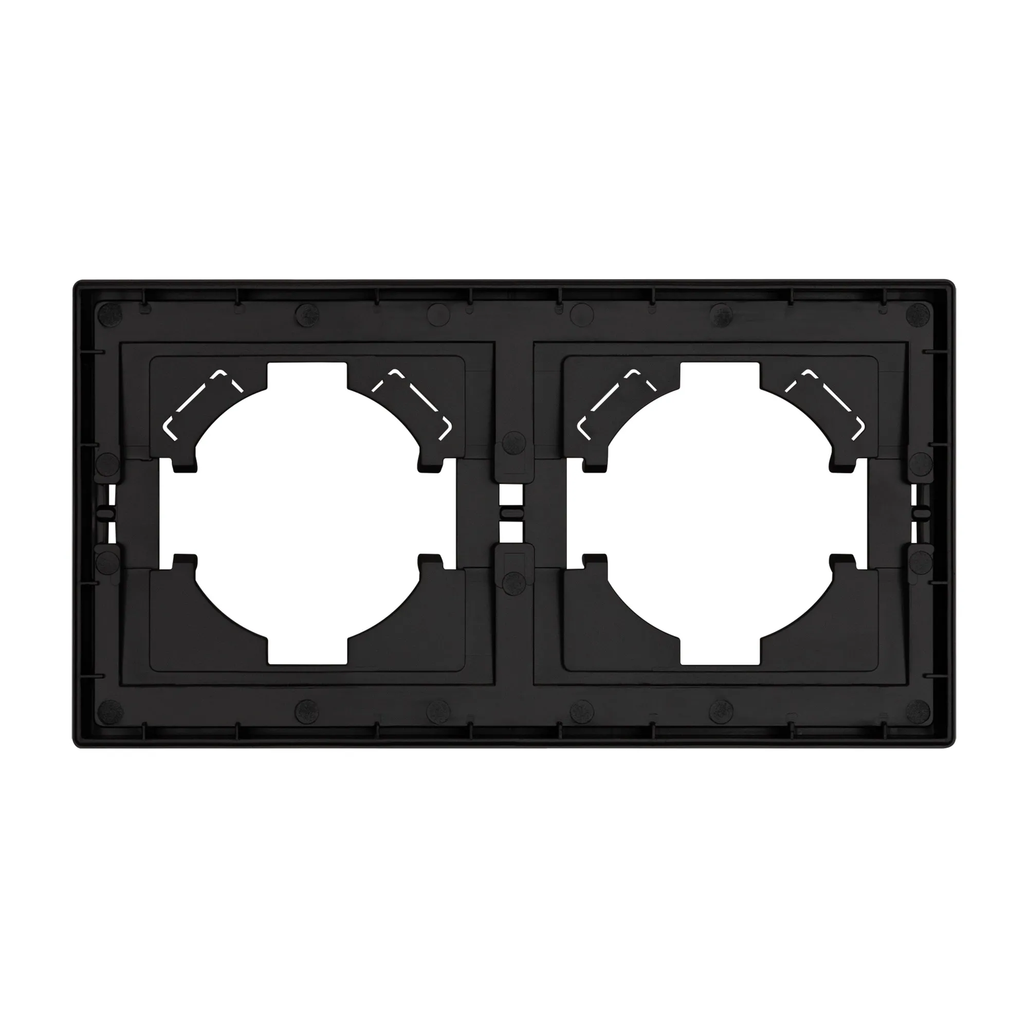 Рамка пластиковая на 2 поста, под встраиваемый механизм. Цвет - серый, с Soft-Touch покрытием. Среднего уровня герметичности IP20. Ориентация монтажа горизонтальная.
