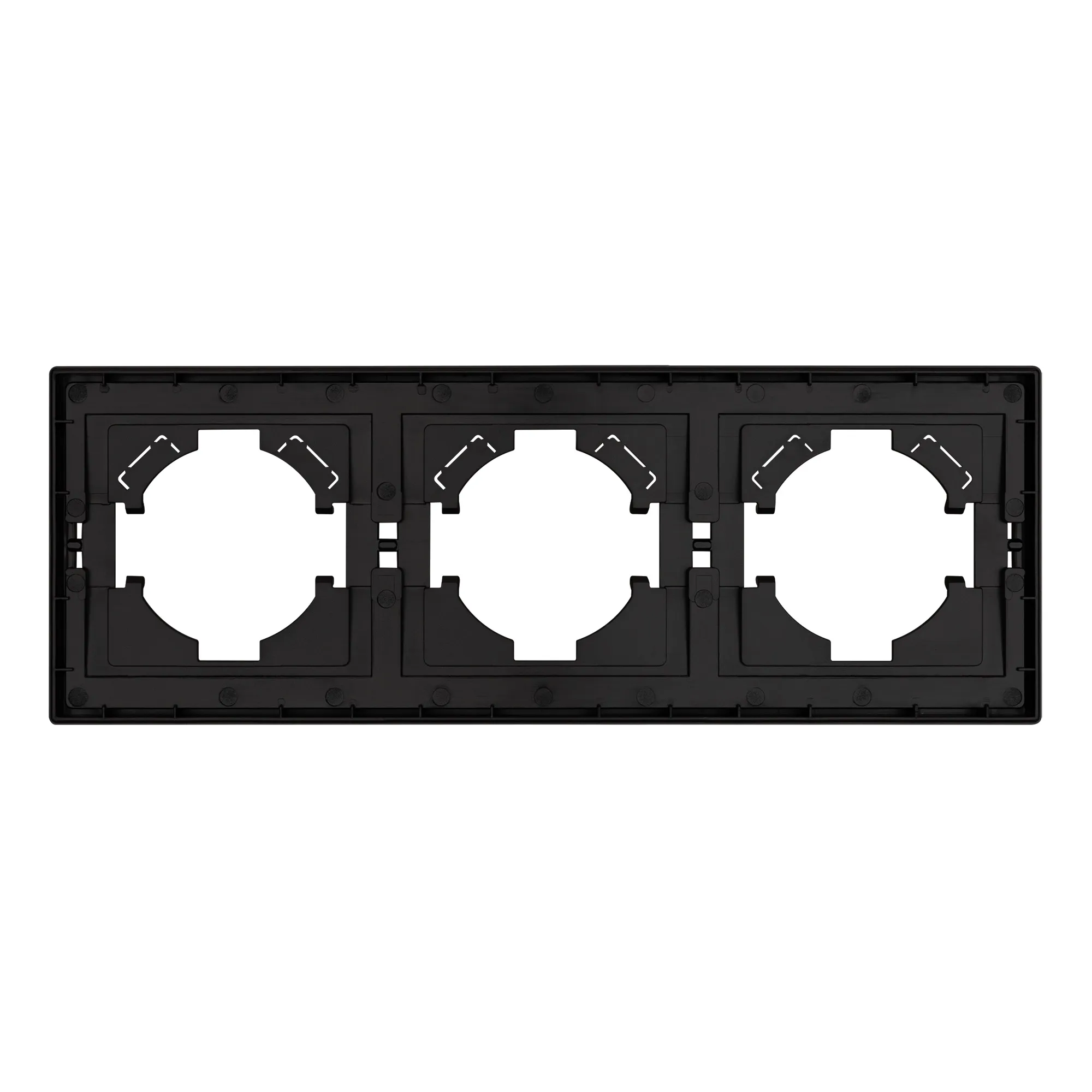 Рамка пластиковая на 3 поста, под встраиваемый механизм. Цвет - серый, с Soft-Touch покрытием. Среднего уровня герметичности IP20. Ориентация монтажа горизонтальная.