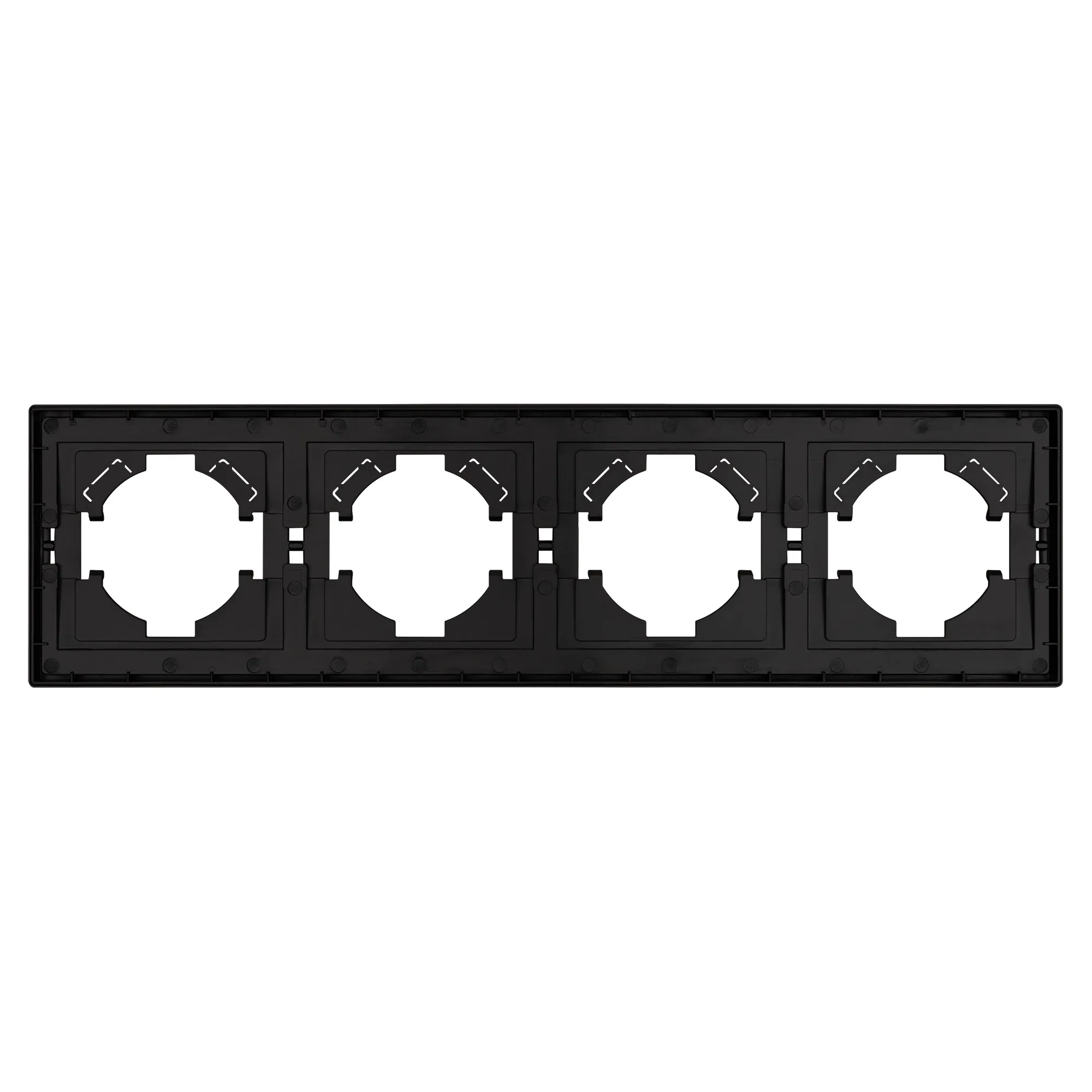 Рамка пластиковая на 4 поста, под встраиваемый механизм. Цвет - черный, с Soft-Touch покрытием. Среднего уровня герметичности IP20. Ориентация монтажа горизонтальная.
