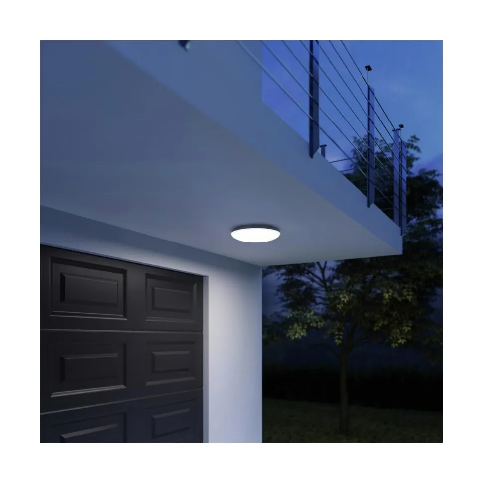 Светодиодный потолочный светильник с точным обнаружением. Четыре инфракрасных датчика можно механически отрегулировать для покрытия любого расстояния от 2 до 8 метров. Обнаружение на 360 ° идеально подходит для оптимальной адаптации к местной ситуации, например, навесам для автомобилей и крыльцам. Рассеиватель света также действует как линза сенсора - впервые в мире запатентовано. Потолочный светильник обеспечивает 1430 лм освещенности при мощности 14 Вт и может быть установлен на высоте до 6 м, включая удобную функцию базового уровня освещенности (10%) в сумерках. DL Vario Quattro PRO LED легко подключается к сети с помощью кабеля (до 10 светильников). Доступен в нейтральном белом (4000 K) и теплом белом (3000 K) цвете.